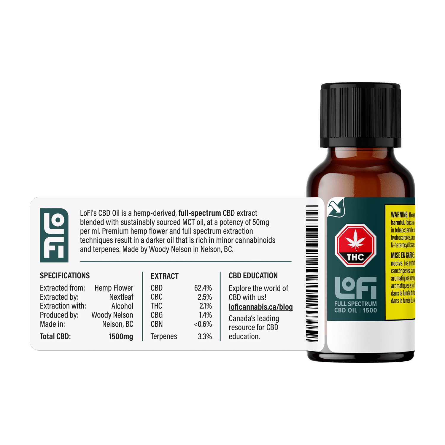 Un mélange d’extrait de CBD à spectre complet dérivé du chanvre de LoFi et de MCT d’origine durable à une puissance de 50 mg par ml et 1 500 mg par bouteille. L’extrait de CBD est produit à partir d’un processus d’extraction et d’hivernage à base d’alcool créant une huile plus foncée, riche en terpènes et en cannabinoïdes mineurs. Fabriqué en Colombie-Britannique.