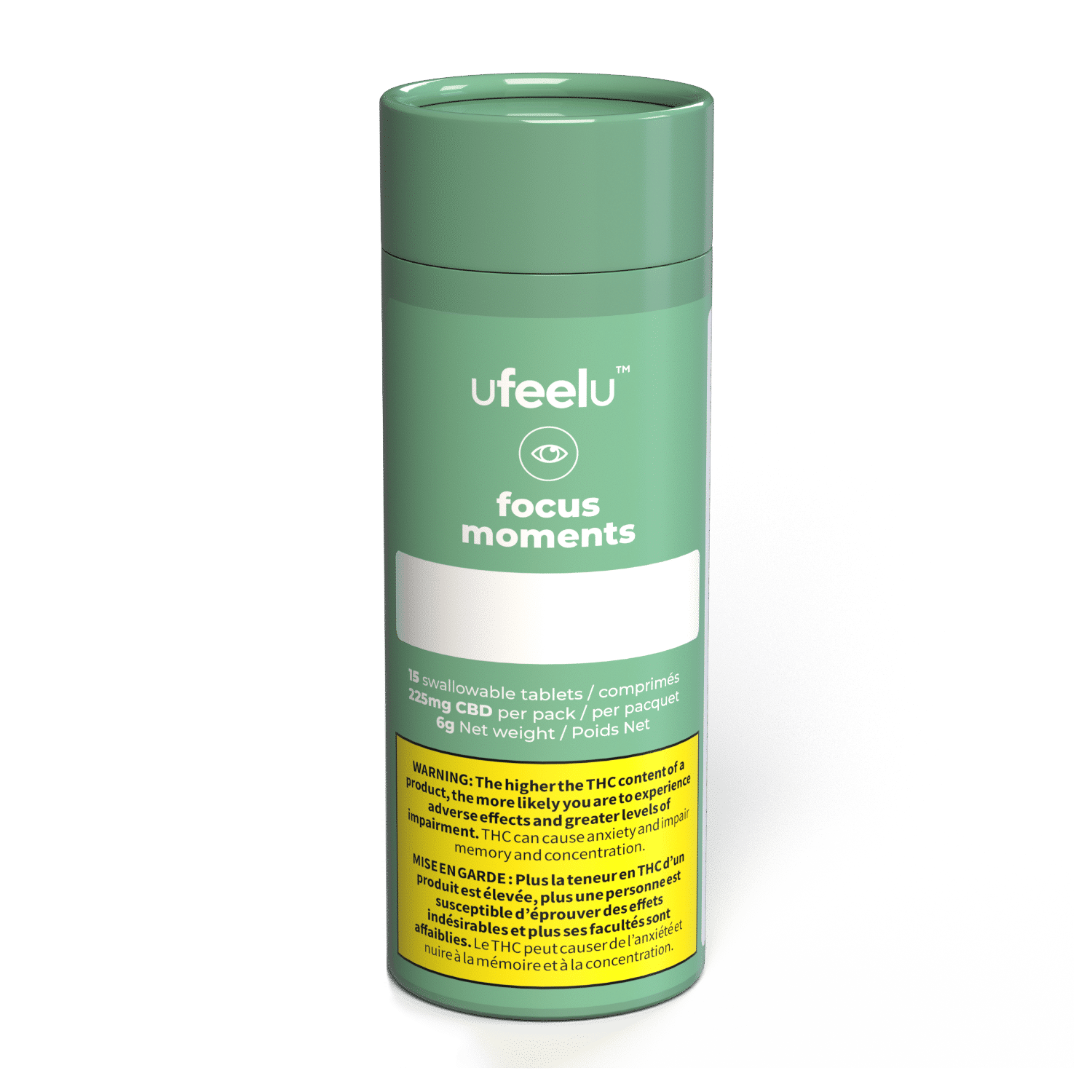 Faites l’expérience d’une clarté mentale accrue avec les comprimés Focus Moment d’Ufeelu. Ces comprimés nano-émulsifiés innovants combinent le CBD, le CBC et le CBG avec un mélange exclusif de 38 terpènes FOCUS, offrant un soutien à action rapide lorsque vous en avez le plus besoin. Fabriqué à l’aide de la nanotechnologie RapidSense™ pour une biodisponibilité supérieure, chaque paquet contient 15 comprimés végétaliens, sans sucre et conformes aux normes kasher et halal.