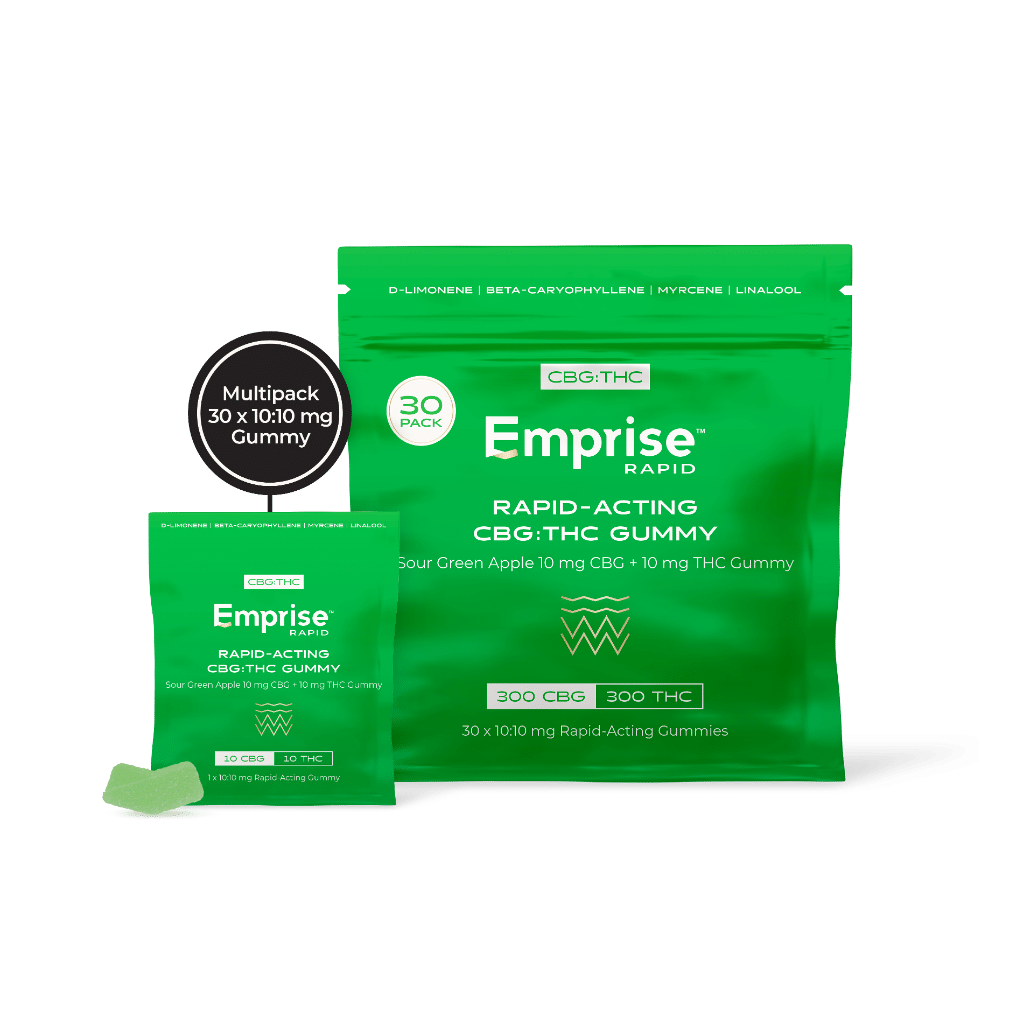 Sour Green Apple 10 mg CBG + 10 mg THC Gummy (30 Pack) by Emprise Rapid
