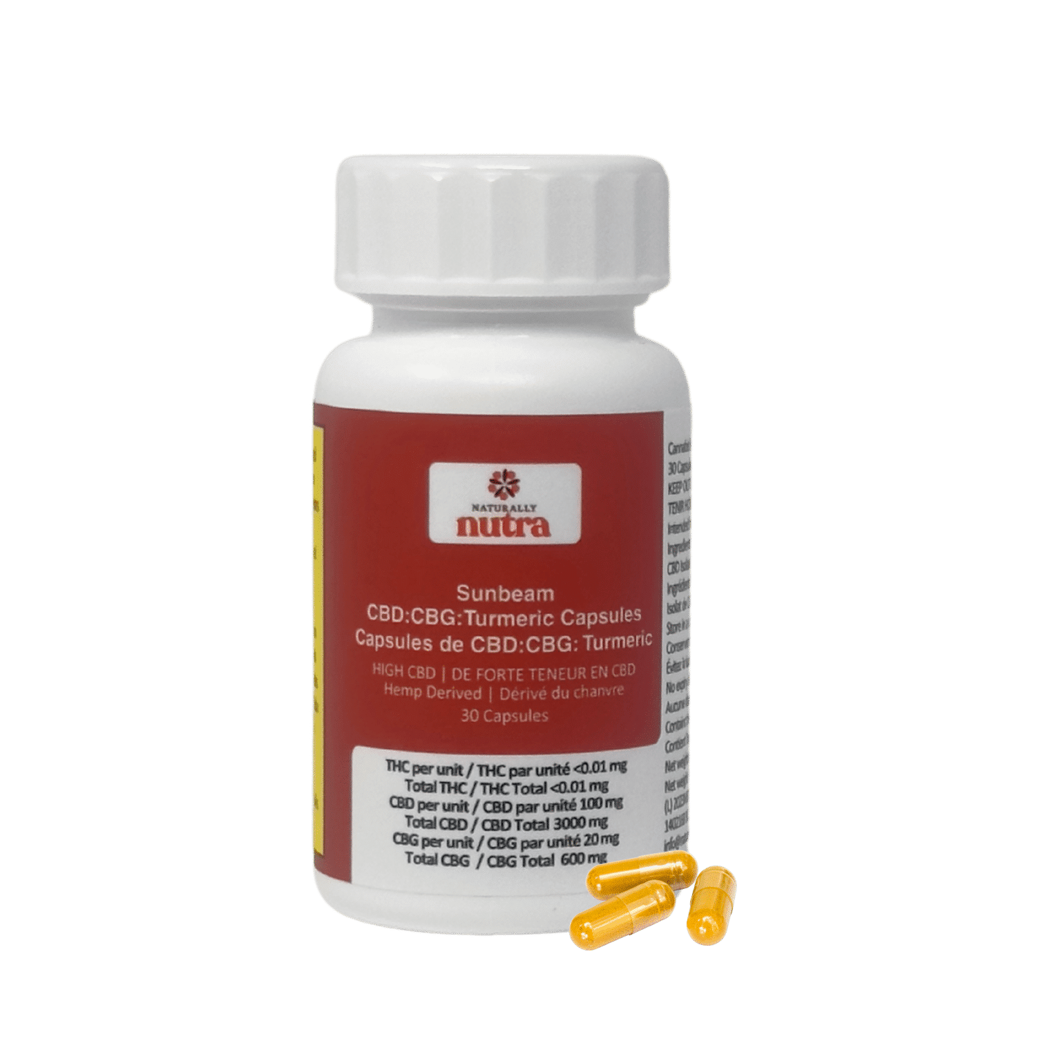 Découvrez les bienfaits synergiques des cannabinoïdes avec les gélules Sunbeam CBD:CBG de Naturally Nutra. Ce supplément soigneusement formulé combine 100 mg d’isolat de CBD pur et 20 mg d’isolat de CBG par gélule, rehaussé de curcuma pour un soutien supplémentaire au bien-être. Totalement exemptes de THC, ces gélules constituent un moyen pratique et précis d’incorporer les cannabinoïdes dans votre routine quotidienne.