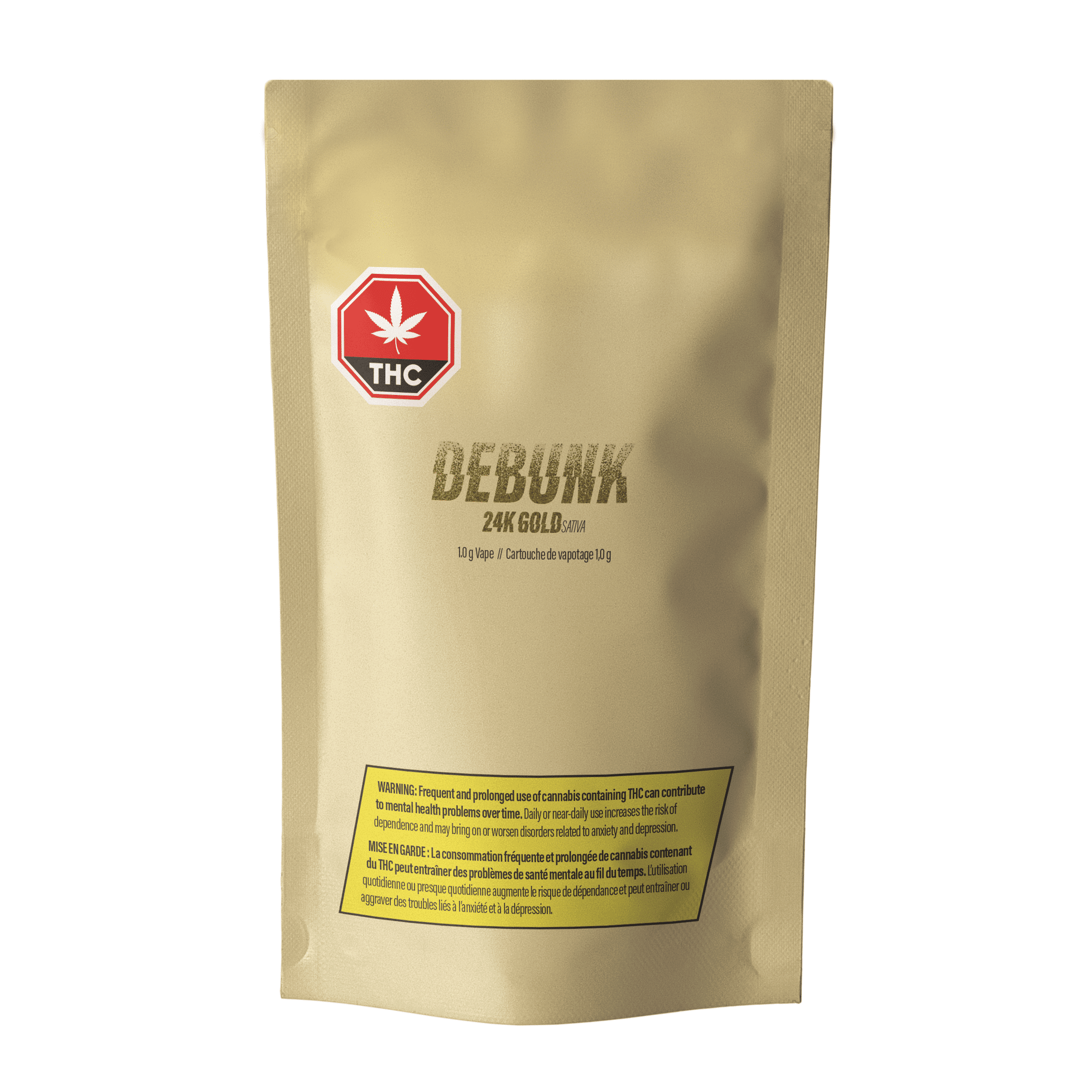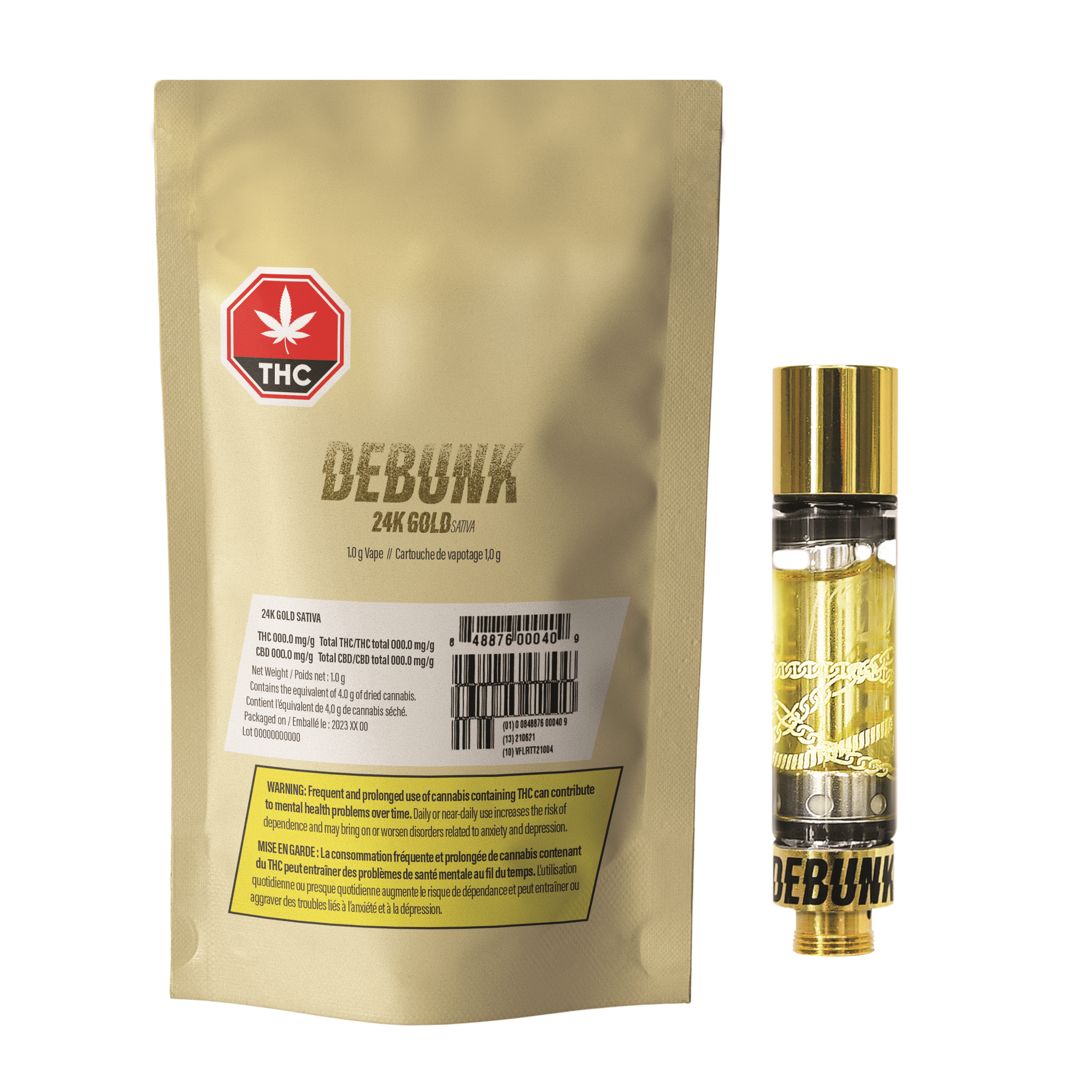 Experience the exceptional quality of 24K Gold Vape, a meticulously crafted 510 thread cartridge from DEBUNK. This Amsterdam-inspired creation combines the legendary genetics of Tangie and Kosher Kush, delivering a full-bodied sativa experience. With 4.91% total terpenes, this premium vape features a sophisticated blend of distillate and full spectrum oil, enhanced with both botanical and cannabis-derived terpenes for optimal potency and flavour.