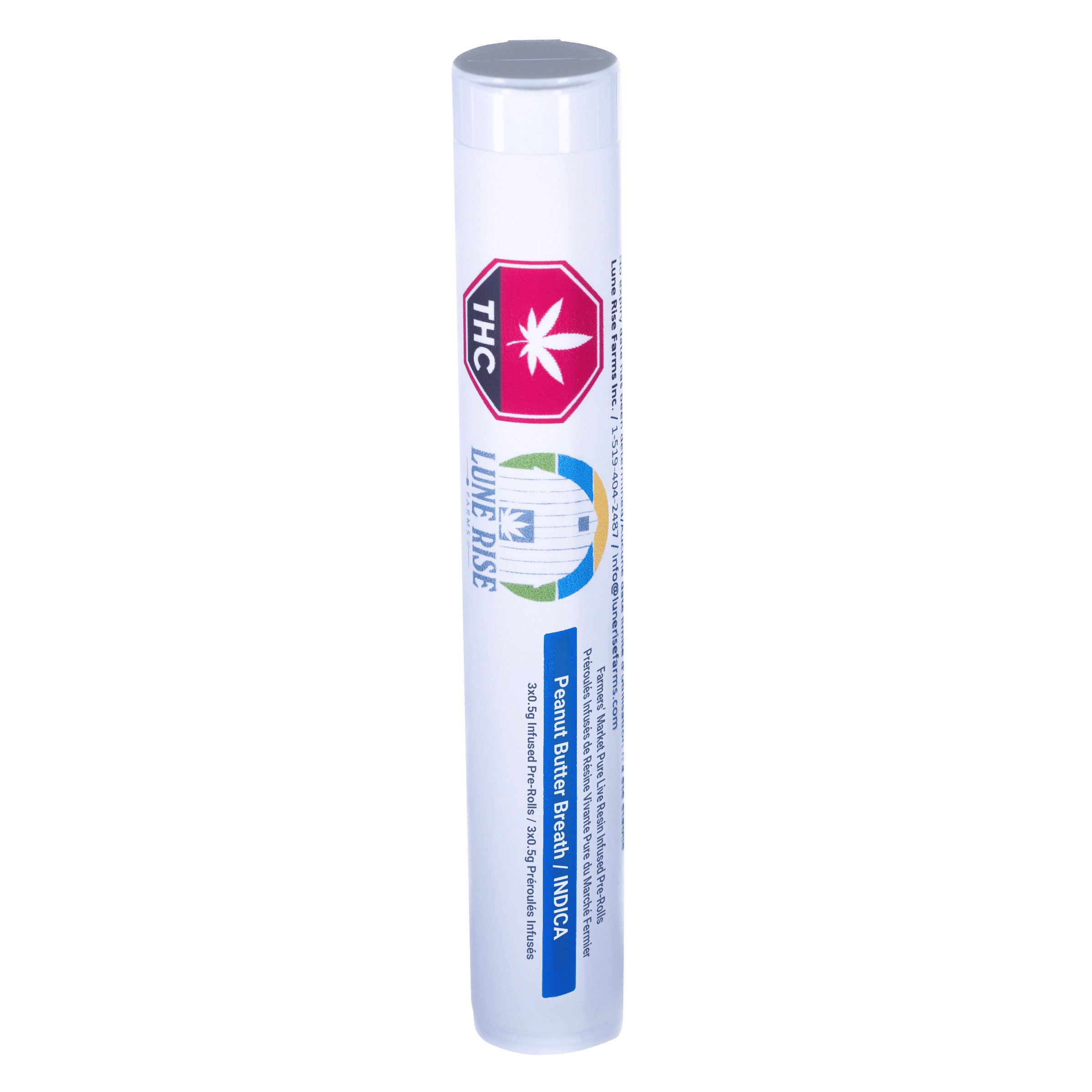 Each Farmers’ Market Pure Live Resin Infused Pre-roll showcases a curated selection of our seasonal strains, hand harvested to preserve the strain’s unique cannabinoid and terpene profile. Peanut Butter Breath is a very chunky and resinous cultivar renowned for its relaxing effects. Enjoy sweet aromas of nutty gas with a touch of eucalyptol on the exhale. Rotational drops will be communicated throughout the year on www.lunerisefarms.com.