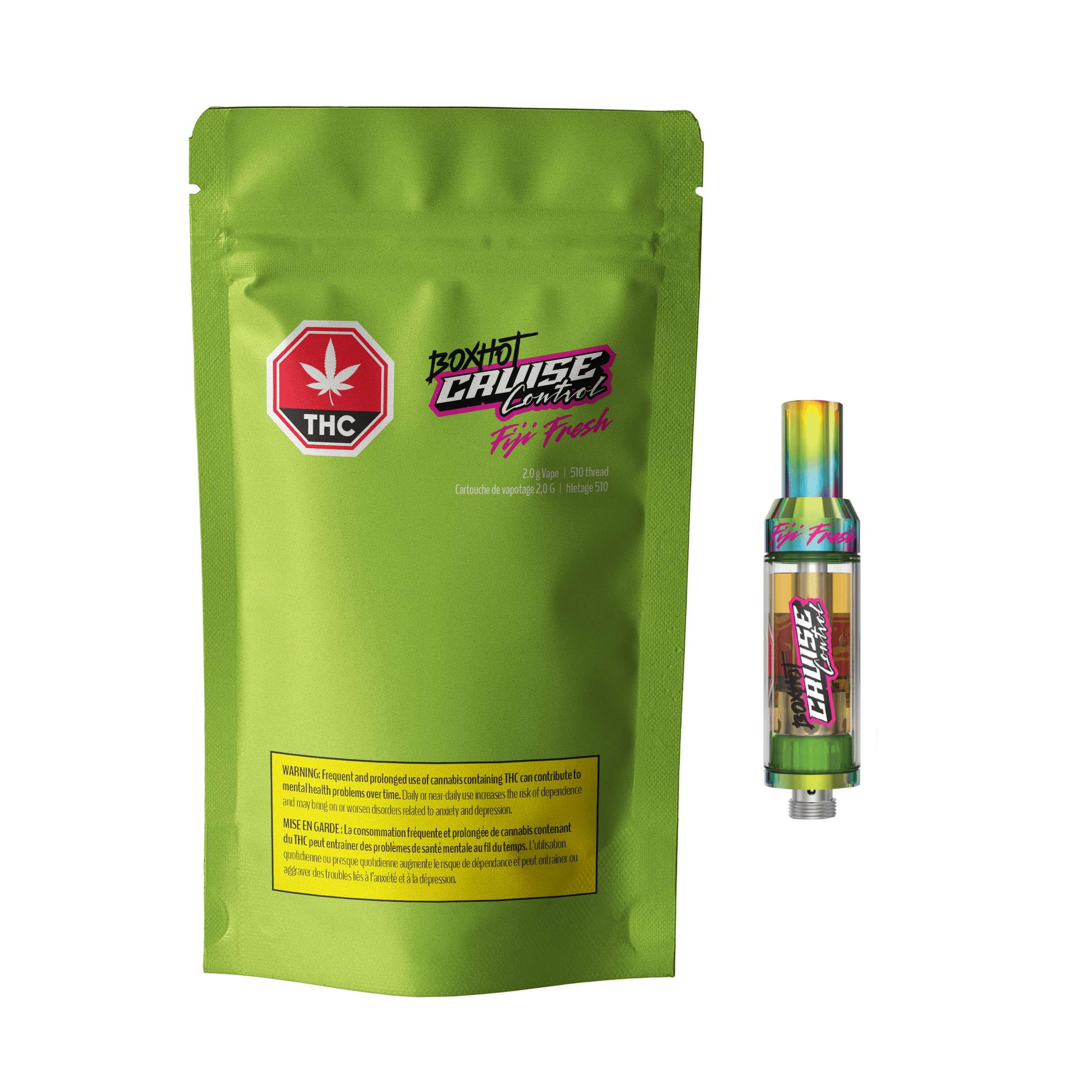 The BOXHOT Cruise Control Fresh Fiji 2.0 g vape cart gets you where you’re goin’, whether you’re full throttle or just relax. With oversized hardware, 1000 mg of THC, 700 mg of CBD, and some of the highest quality distillate out there, this daddy is one hell of a trip.