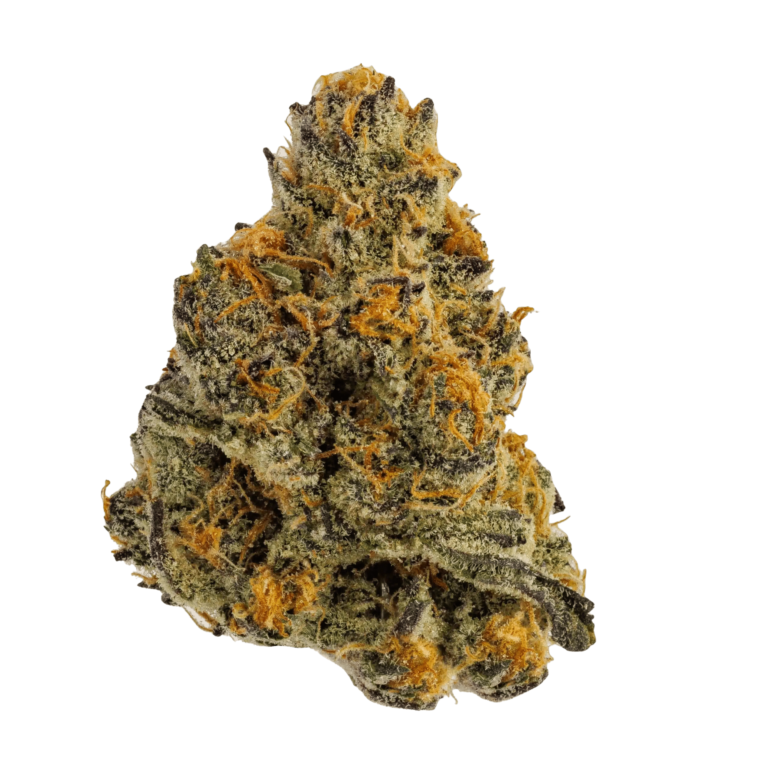 - Visually striking purple and green buds with orange pistils and thick resin coating