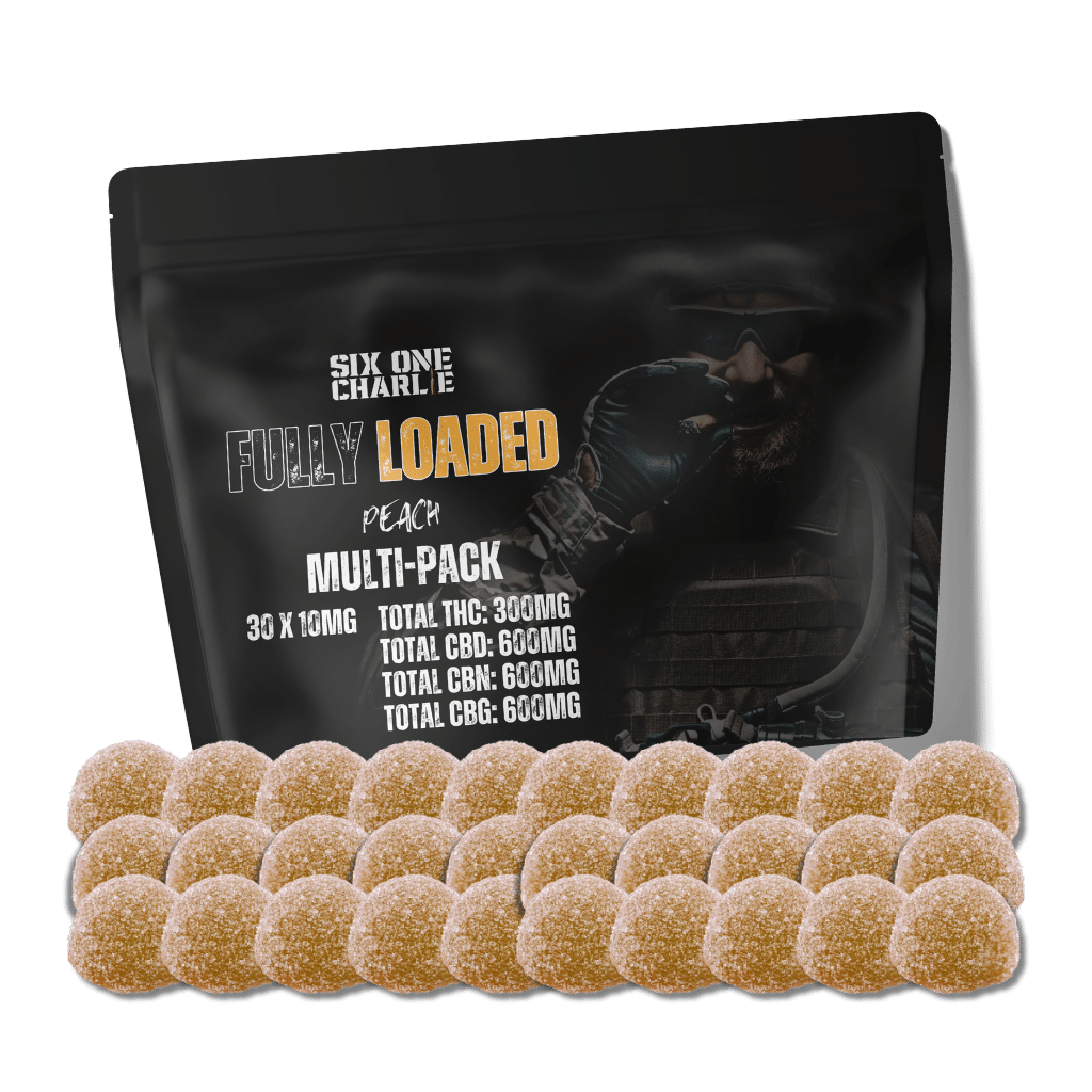 Fully Loaded Peach – THC+CBD+CBG+CBN Live Rosin Gummies 30x Multi Pack by Six One Charlie