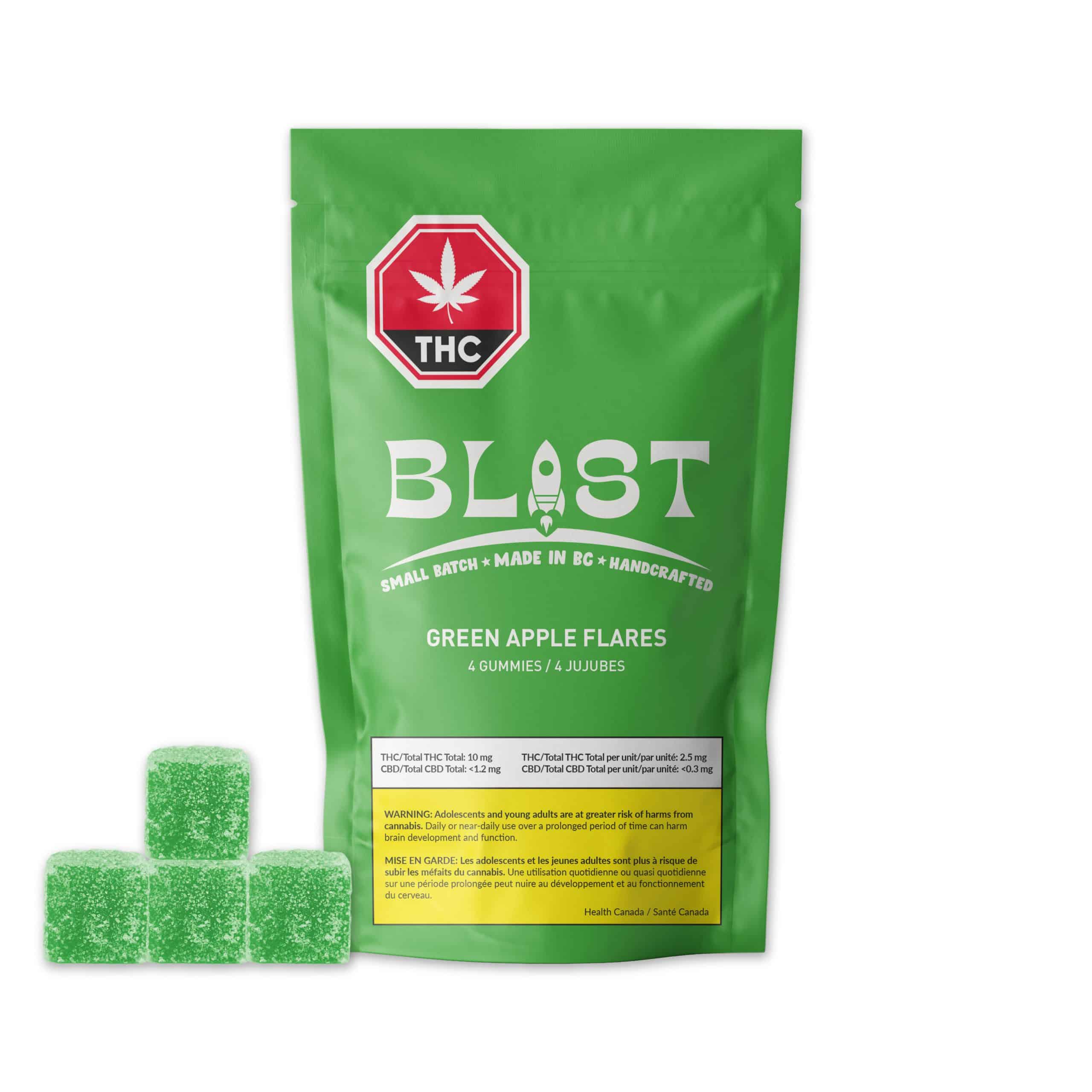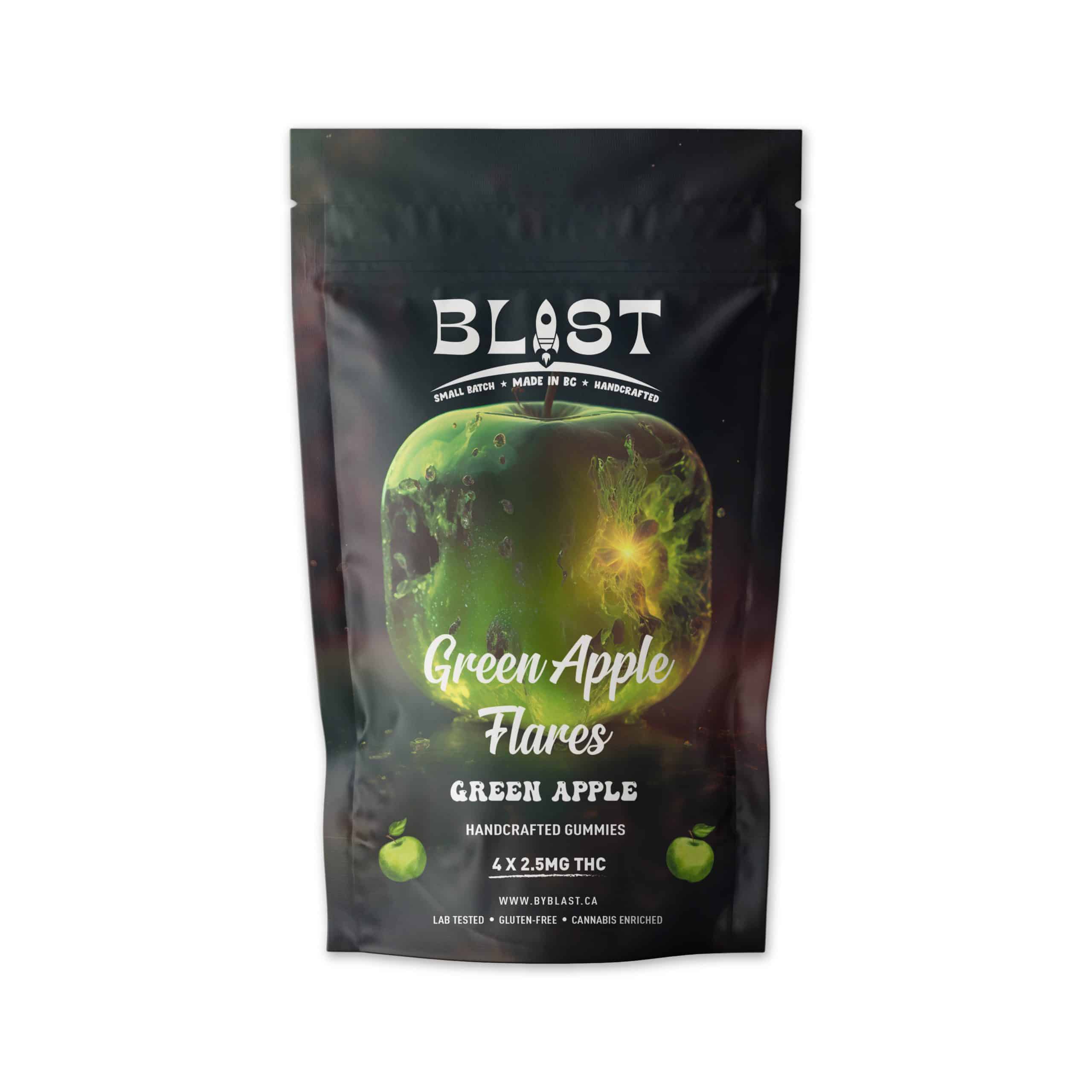 Experience a unique fusion of tangy and spicy with BLAST Green Apple Flares Gummies. These cannabis-infused edibles combine the crisp, sour taste of green apple with an unexpected hint of heat, creating a bold flavour profile that sets them apart from traditional gummies. Each piece delivers a carefully measured dose of cannabis extract alongside premium ingredients for a consistent and enjoyable experience.