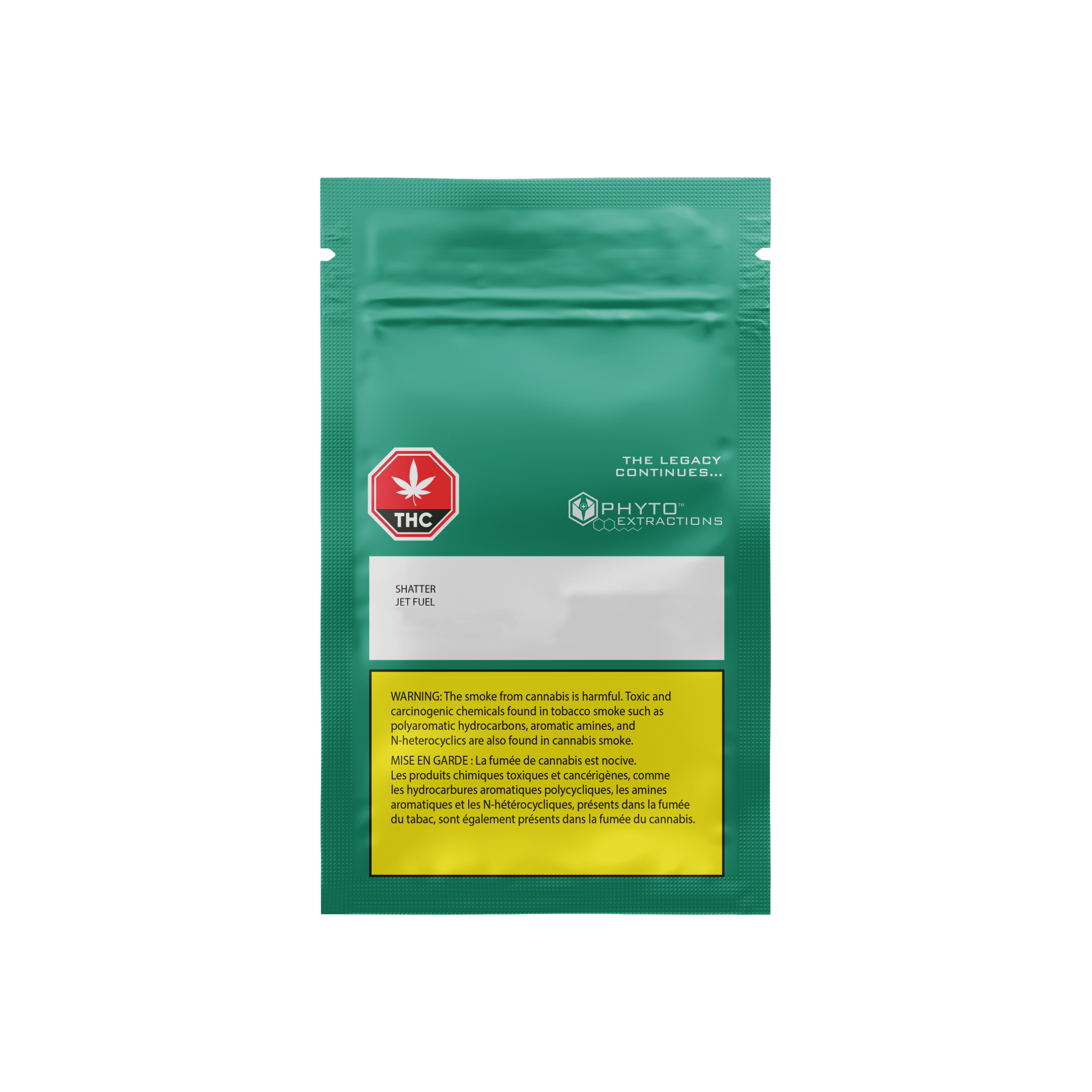 Experience premium-quality cannabis concentrate with Jet Fuel Shatter from Phyto Extractions. This high-potency shatter delivers 72-82% THC alongside a robust 3.83% total terpene profile, offering medical cannabis patients a reliable and consistent concentrate option. With its distinctive diesel and sour citrus notes complemented by subtle violet floral undertones, Jet Fuel Shatter provides both therapeutic potential and an engaging sensory experience.