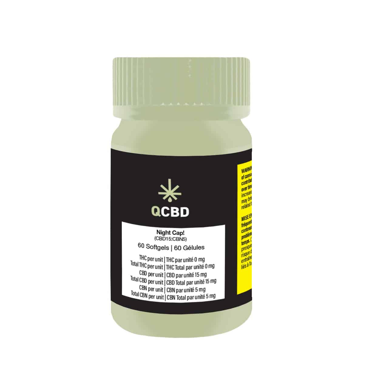 Experience the calming synergy of CBD and CBN with Night Cap! by QCBD. Each precision-crafted soft gel contains 15mg of CBD and 5mg of CBN, derived from full-spectrum cannabis extract and paired with palm oil-free MCT oil for optimal absorption. Designed to support your evening wellness routine, these THC-free capsules offer a convenient way to transition from day to night with 60 capsules per container.