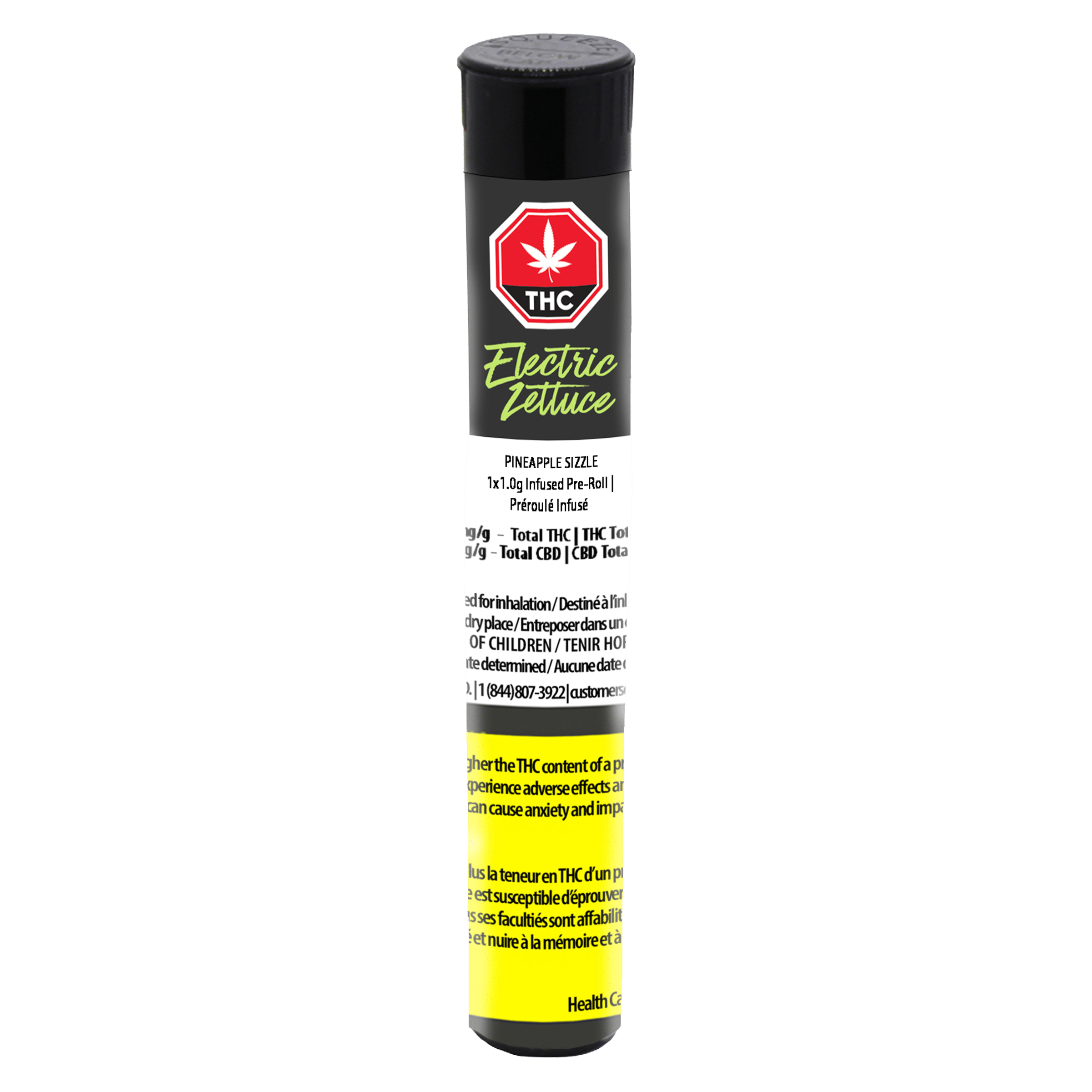 Experience the tropical fusion of premium hybrid cannabis and tangy pineapple botanical terpenes with Electric Lettuce’s Pineapple Sizzle Infused Pre-Roll. This 1g infused pre-roll combines expertly cultivated indoor-grown hybrid flower with pure THC distillate, delivering a potent and flavourful cannabis experience that may help elevate your mood with euphoric effects.