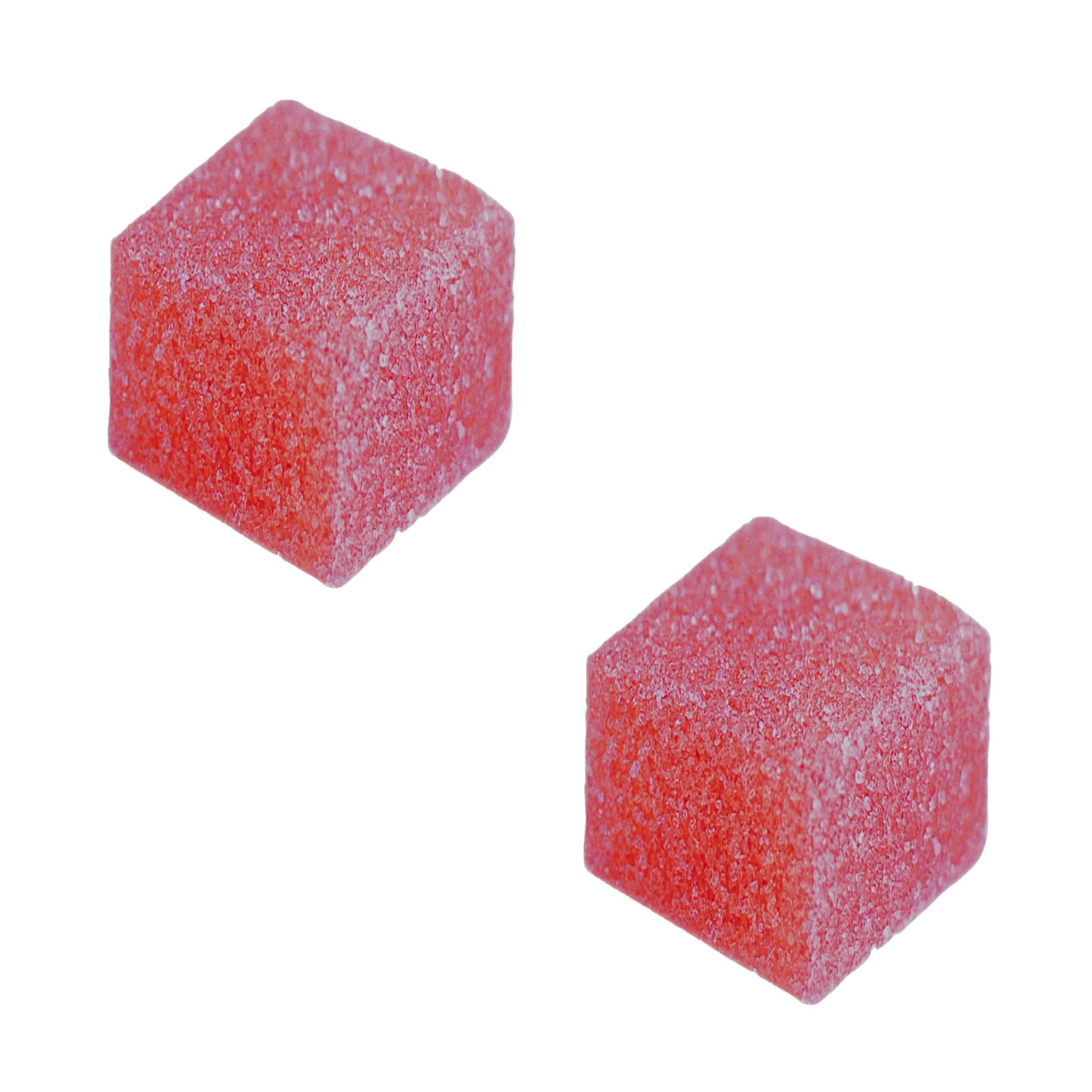 Sugar, (sugar, corn syrup), water, gelatin, citric acid, natural and artificial flavour, pectin, MCT oil, cannabis extract, tartrazine, canola oil.