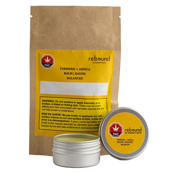 Camellia oleifera seed oil, Caprylic capric triglycerides, Simmondsia chinensis (jojoba) oil, Arnica montana extract, Candelilla cera wax, Mangifera indica (mango) seed butter, Cannabis extract, Gaultheria Procumbens (wintergreen) leaf oil, Boswellia serrata (frankincense) resin oil, Mentha Piperita (peppermint) herb oil, Cymbopogon flexuosus (lemongrass) leaf oil, Curcuma longa (turmeric) root oil, Eucalyptus polybractea (eucalyptus) leaf oil, Piper nigrum (black pepper) fruit oil, Cedrus atlantica (cedarwood) oil, Cananga Odorata (ylang ylang) flower oil, Curcuma longa (turmeric) and propanediol